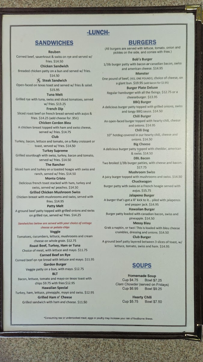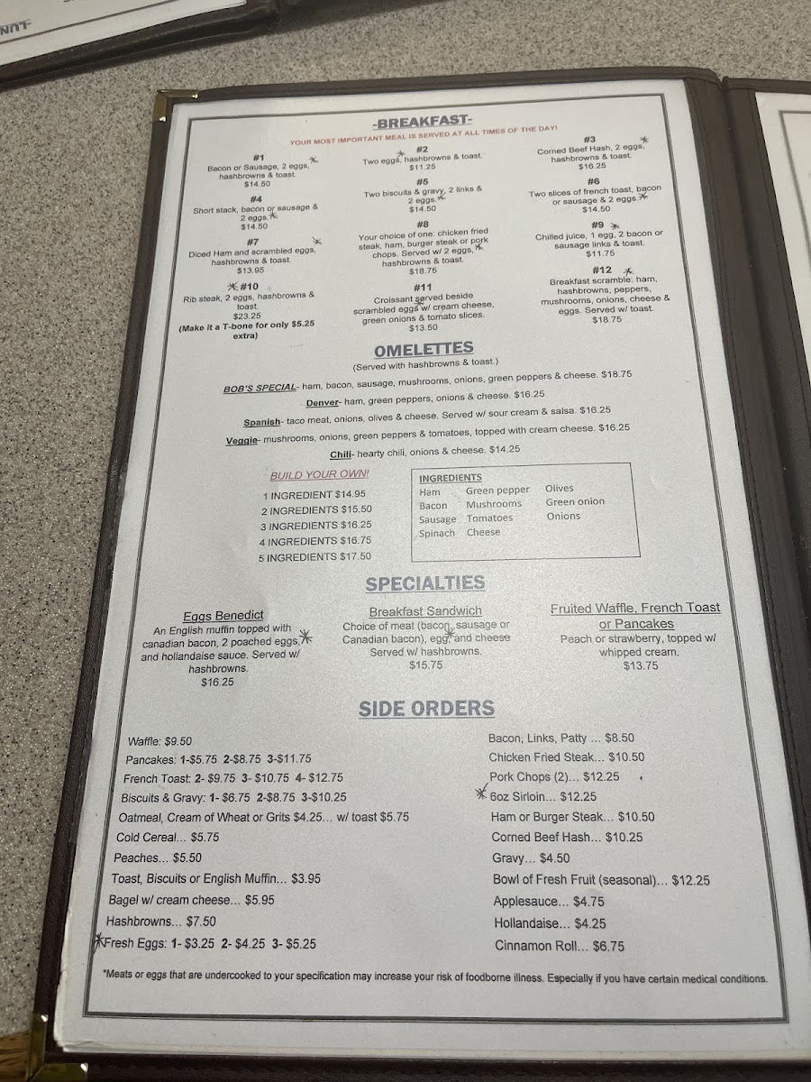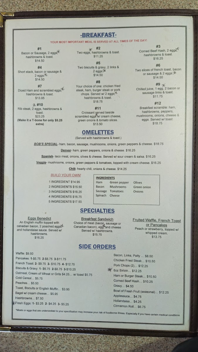 Bob's Cafe Menu
